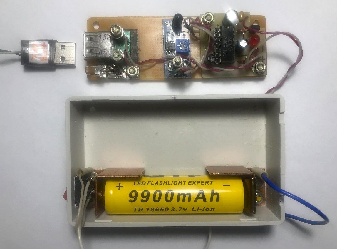 - Li-ion батареи TR 18650 с рабочим напряжением +3,7 Вольта и её самодельного держателя.