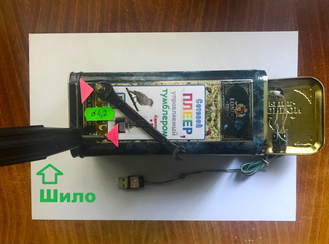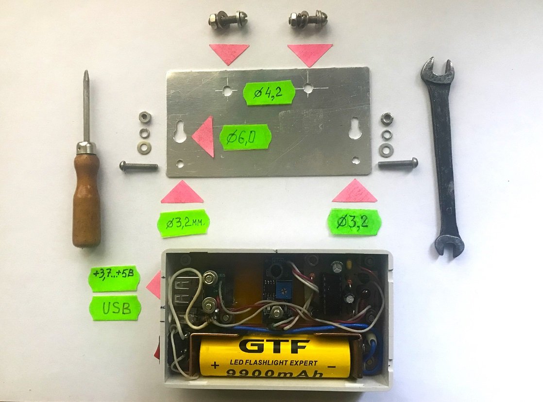 Корпус СПУТ сделан из тонкой жести. Дополнительные крепёжные отверстия d = 4,2 мм в его корпусе проделываются толстым шилом.