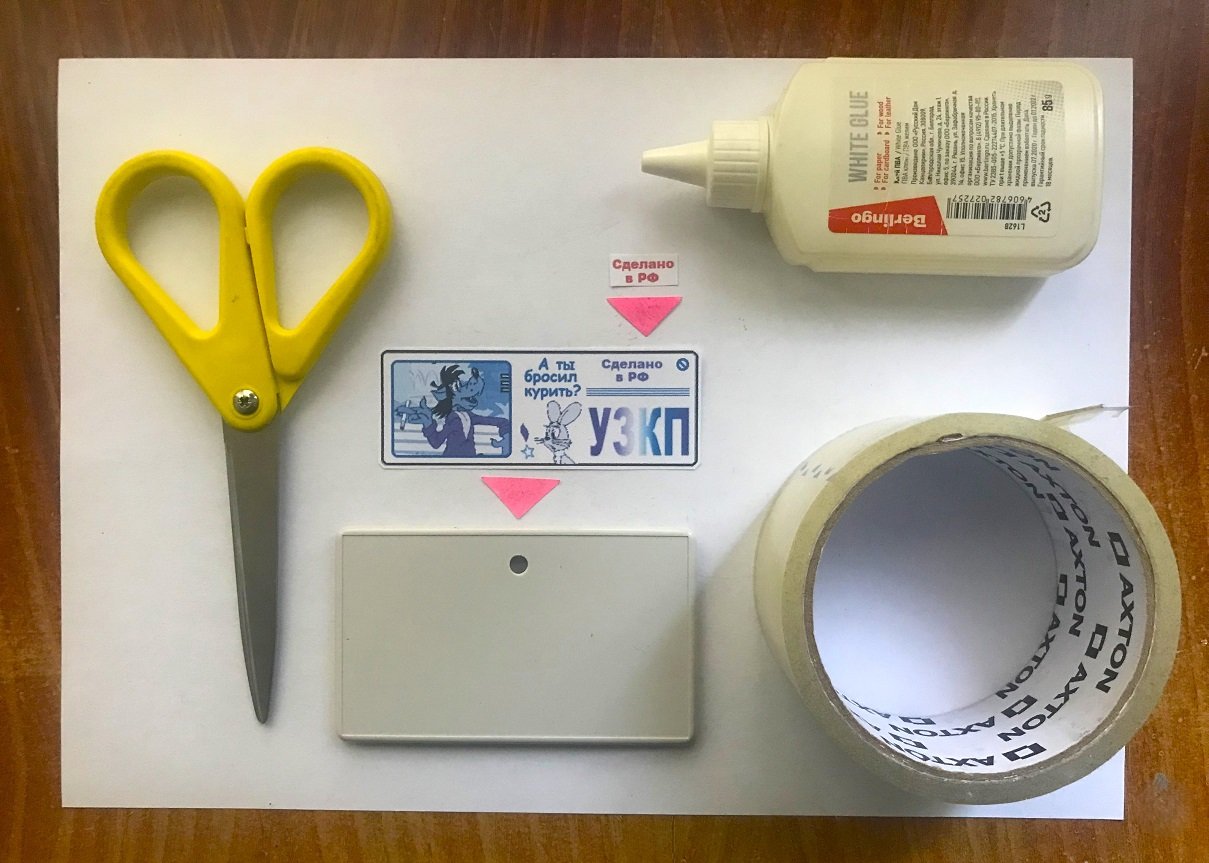 6). Прозрачный скотч шириной 48 … 50 мм для приклеивания фальшпанели и этикеток.