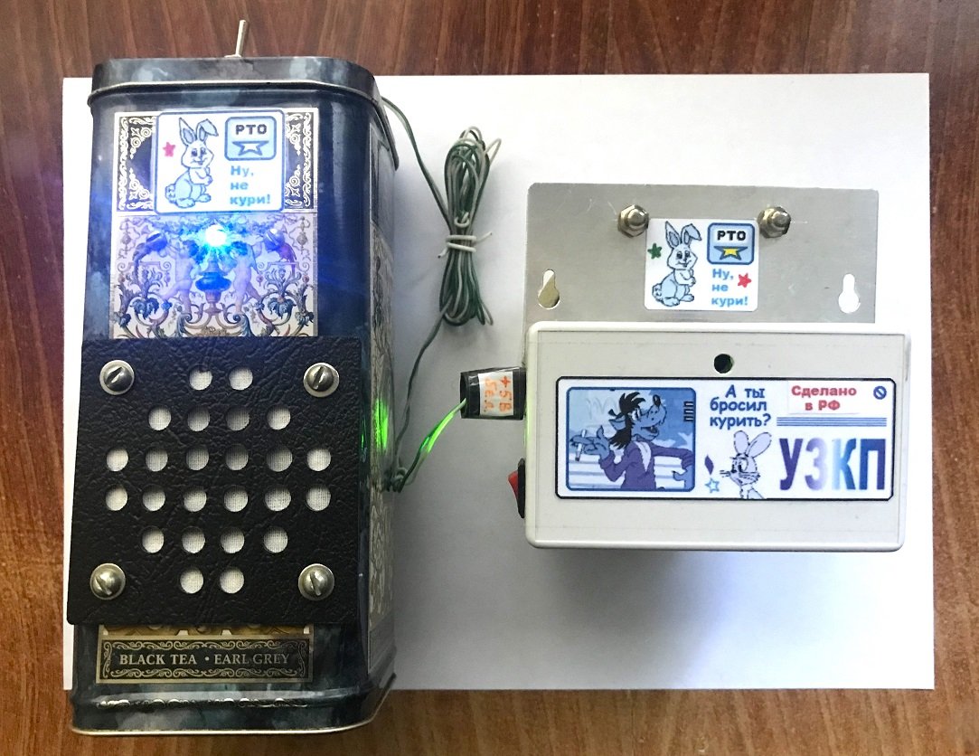 Устройство, запрещающее курение в помещении (далее просто УЗКП) включает в себя два устройства.