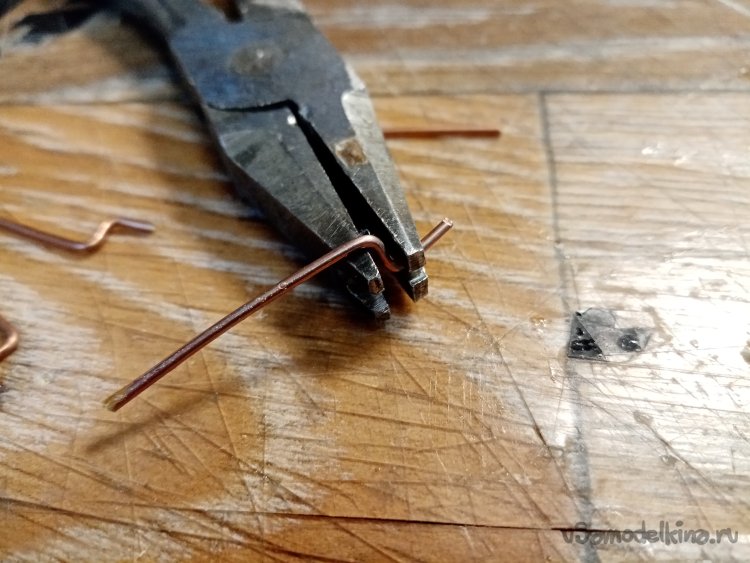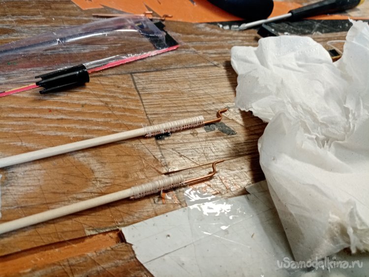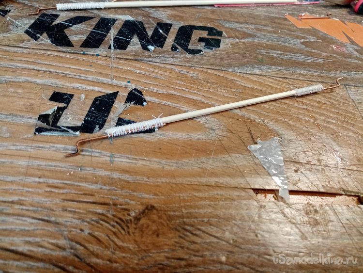 Затем изготовил тяги управления по такому же способу. Из палочки и проволоки.