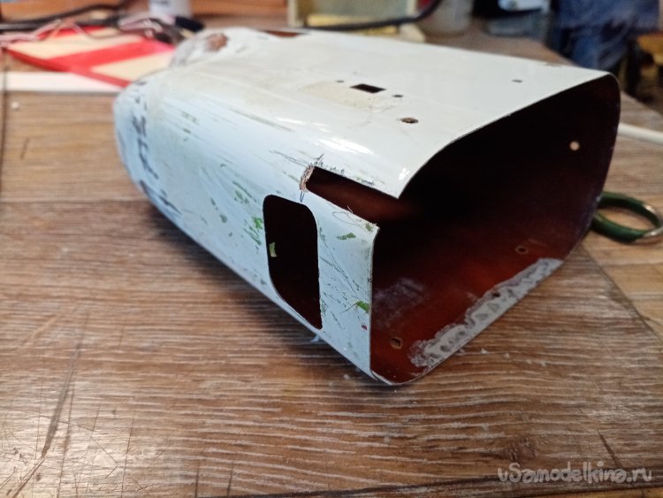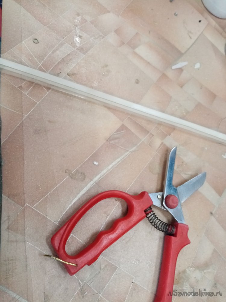 Кабанчики управления изготовил из пластикового строительного уголка. Разметив положение, прорезаю отверстие для вклейки детали при помощи треугольного ножа для творчества.