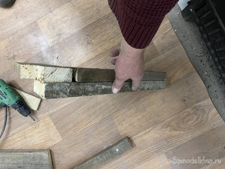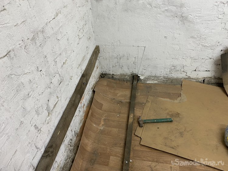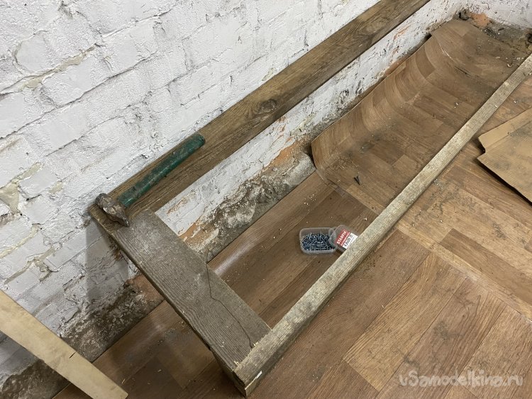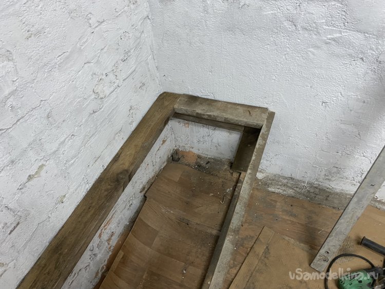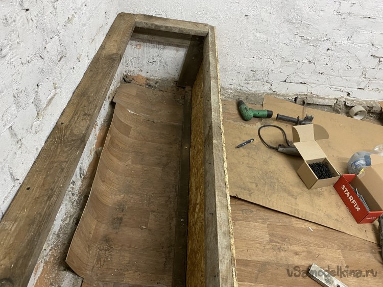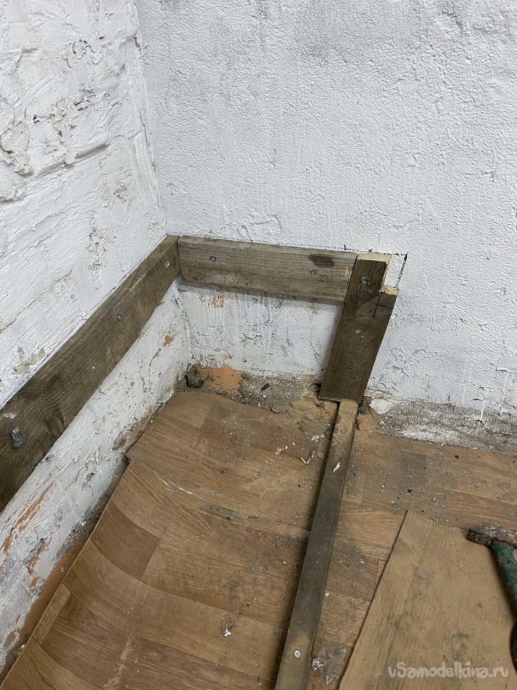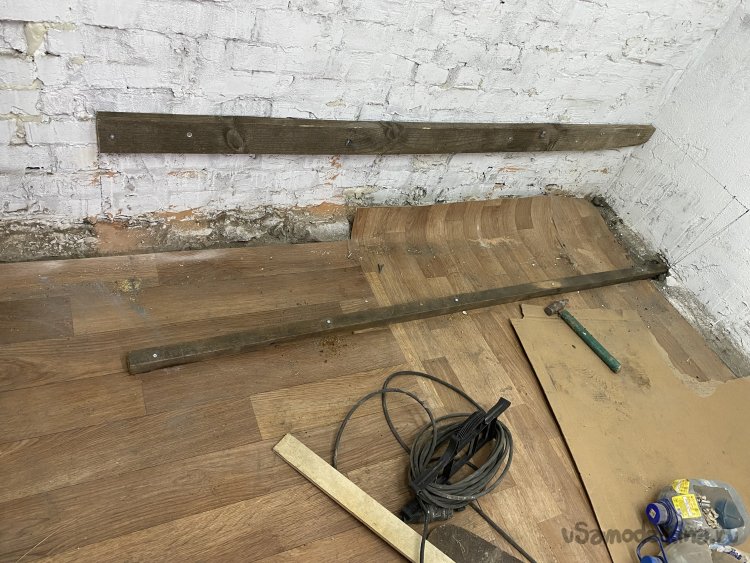После этого, при помощи шурупов быстрого монтажа (дюбель-гвоздей в простонародии) прибил к стенам и полу старые толстые доски: