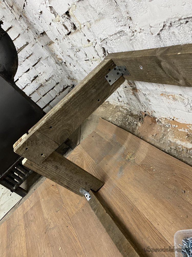 После этого соединил торцы верхней продольной доской, разместив её края в заранее оставленных для неё вырезах. Сверху торцы накрыл горизонтальными досками: