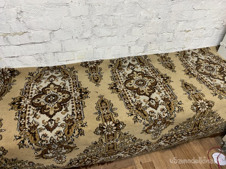 А потом на даче нашёл ковровый комплект для мягкого уголка. Всё равно, ведь, на диван его никто не положит уже никогда, даже на даче! ))) А в сарай пойдёт! Привёз, постелил. Для этого сложил вдвое: