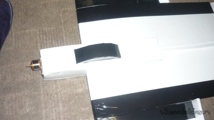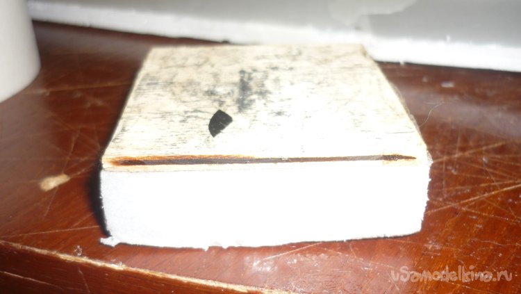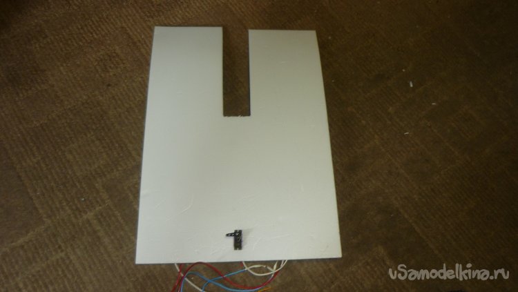 Для моторамы вырезал кусок утеплителя и приклеил нам него кусочек 3 мм. фанеры.