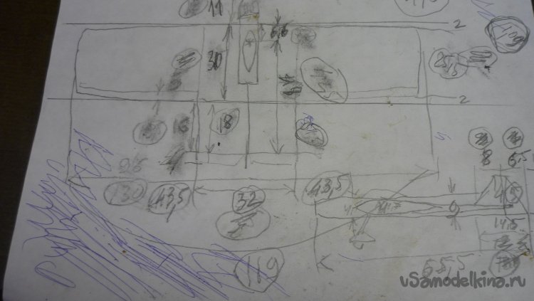 Размечаю место установки сервомашинки руля высоты.