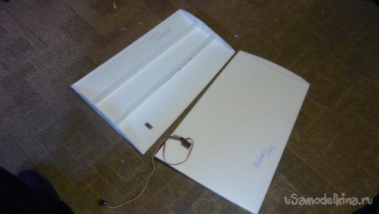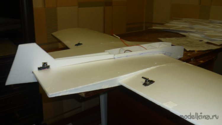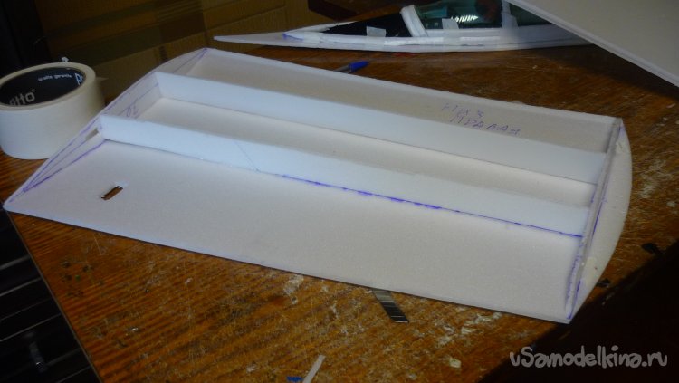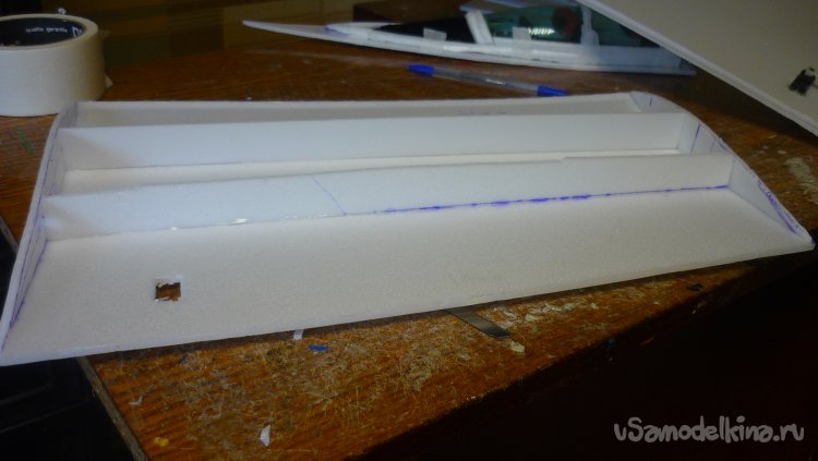 Размечаю места установки сервомашинок управления элеронами.