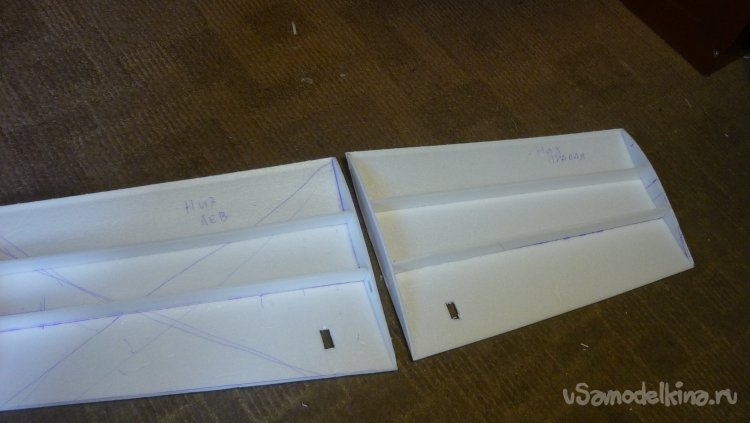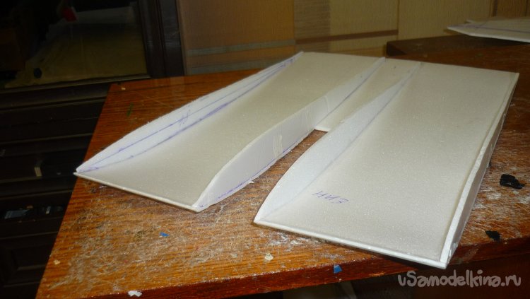 Как обычно , начинаю с разметки и вырезания верхней и нижней обшивок консолей крыла.