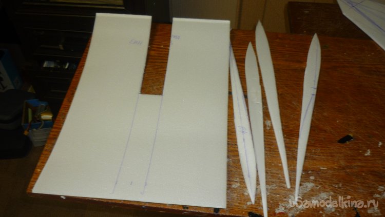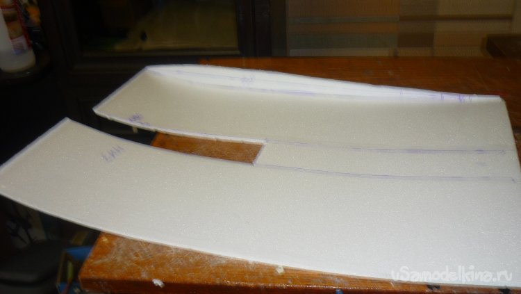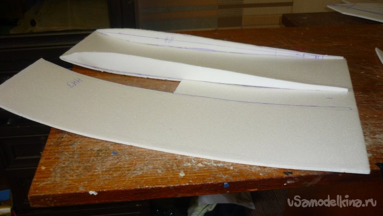 Вырезаю заготовки для элеронов, они склеиваются в два слоя.