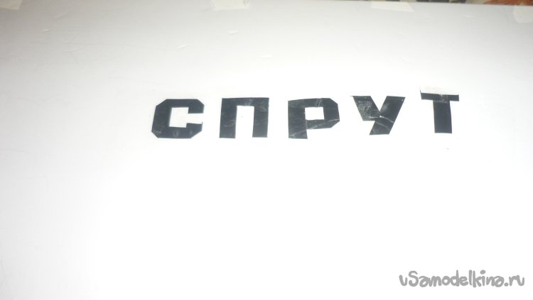 Вырезаю буквы, монтирую надписи и провожу обтяжку модели цветным скотчем.