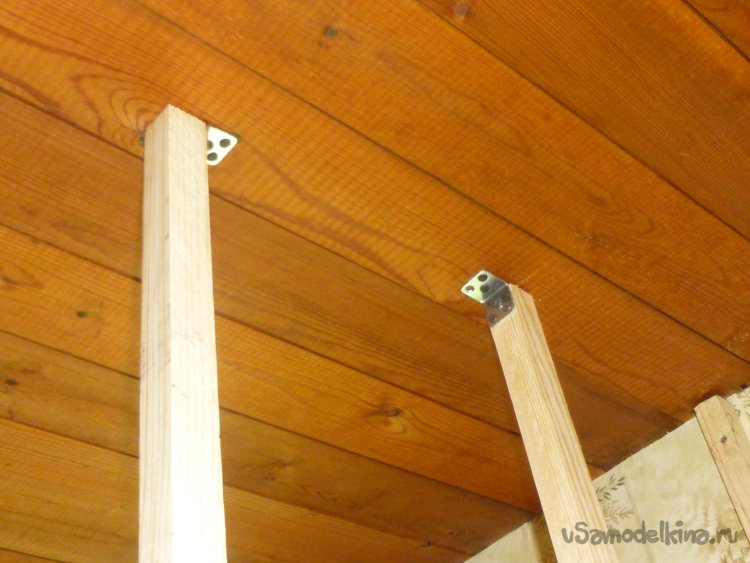 Выделил место под будущий санузел 900х2200 мм. С учётом толщины вагонки стал устанавливать стойки с поперечинами (высота потолка 2450 мм).