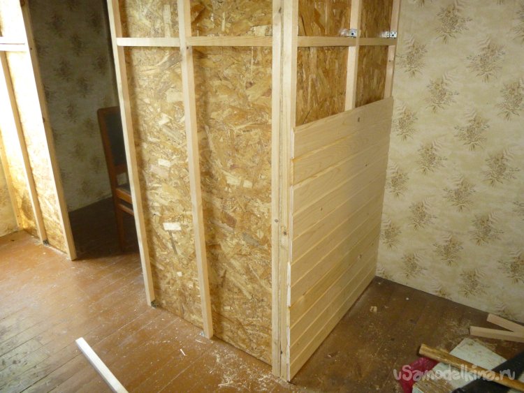 Затем изнутри для придания прочности перегородке обшил ОСБ-листами.