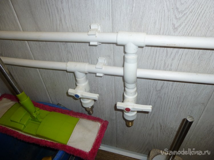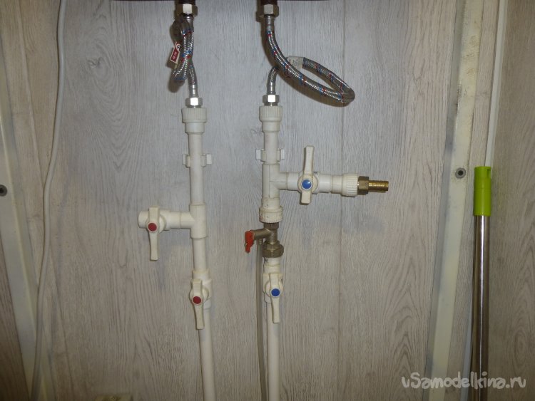 Обратите внимание, это единственный смеситель, у которого не установлены перекрывающие краны в трубопроводе (просто я их уже использовал для слива всей системы).