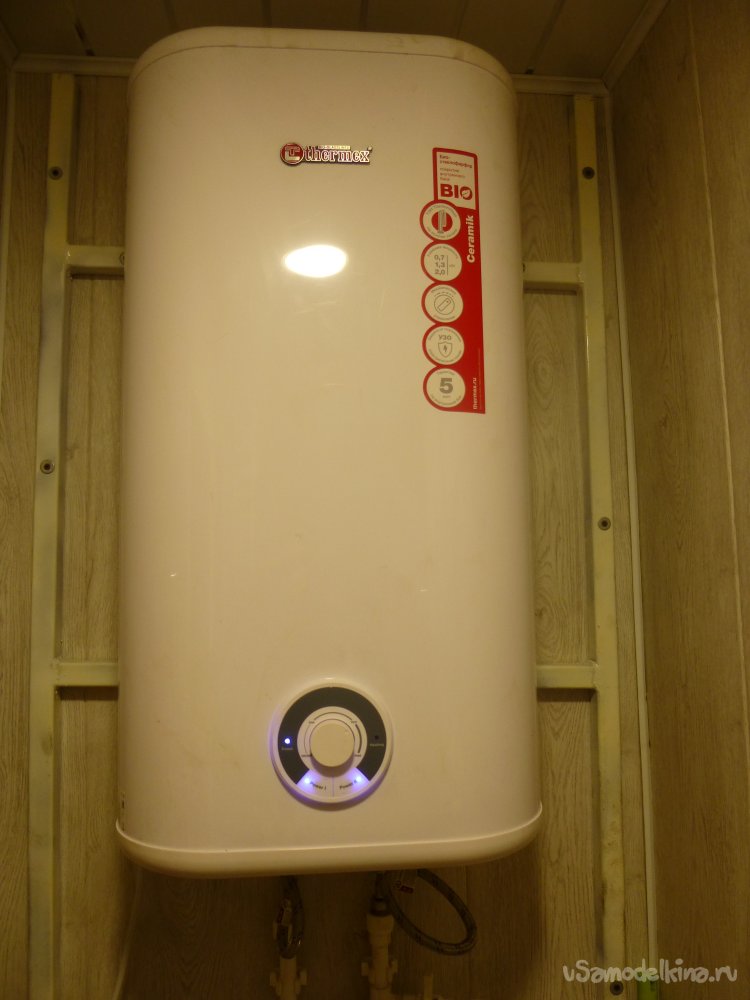 Подключается бойлер к розетке, которая запитывается от наружной розетки для подключения септика.
