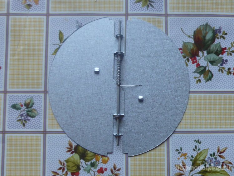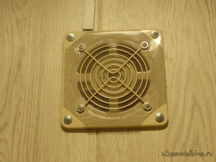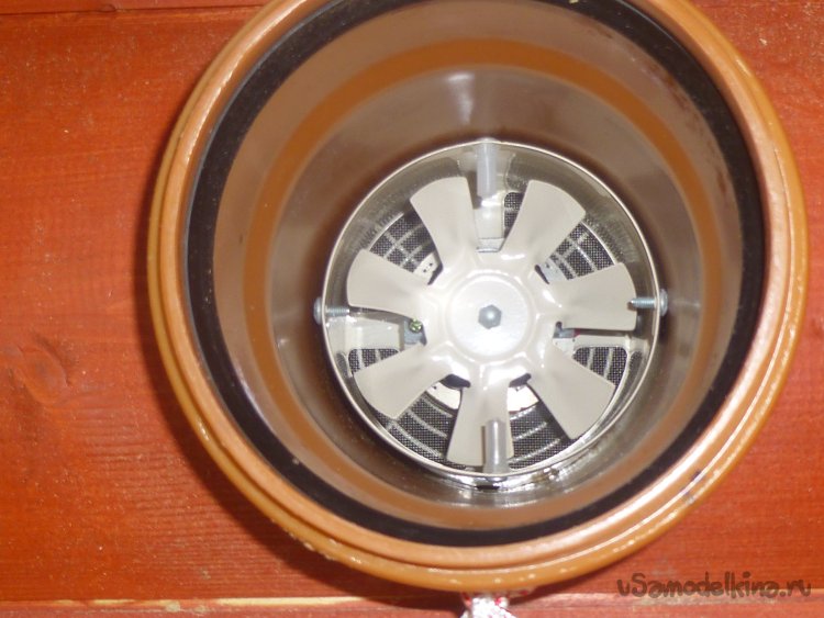 Фу-у…, ну вот мы и дошли до пресловутого вентилятора. Дорогой, кстати, зараза, стоил порядка 1600 руб. Фенечка его заключается в том, что когда он не работает, вытяжной канал закрывается лёгкими алюминиевыми лепестками, и ни одна летучая или ползучая тварь не должна просочиться в дом (у меня стоят подобные итальянские вентиляторы дома в Москве в ванной и в туалете, а это наше исполнение). Так вот, мощности не хватает, чтобы до конца открыть эти лепестки плюс ещё и большой зазор между корпусом и лепестками. Я попробовал поставить более слабые пружинки — они не возвращают лепестки на место при выключении.