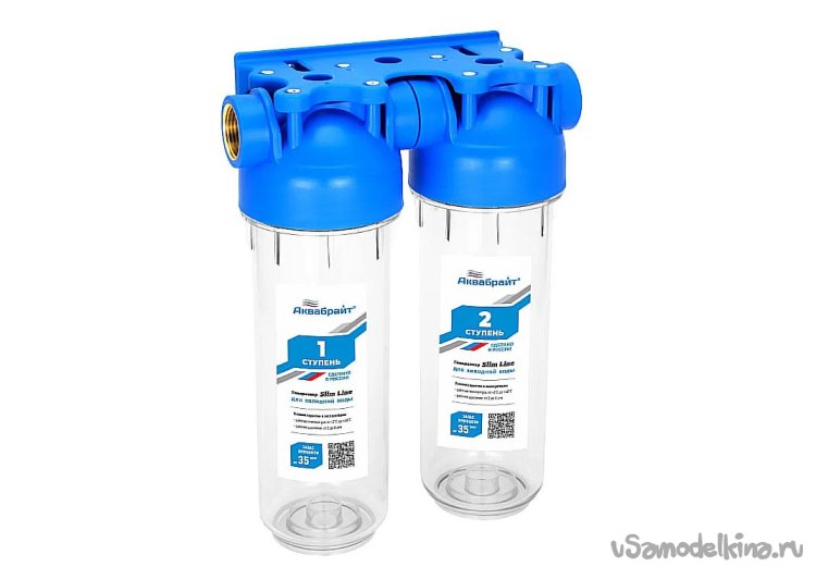 Эксплуатация водопровода на даче в течение 3 месяцев (включая 2024 и 2025 г.г.) показала, что одного фильтра, отсекающего крупные фракции песка, недостаточно. Со временем забиваются сеточки на смесителях и душевой лейке, что сказывается на потоке воды. Появляются отложения на впускном клапане унитаза, что приводит к его переливу и, как следствие, более частому включению насосной станции. В бойлер поступает не чистая вода, появятся отложения на ТЭНах, что скажется на его характеристиках и сроке службы. Я понял, что поспешил радоваться и надо ещё врезать в систему на её входе в дом вот такие магистральные фильтры.