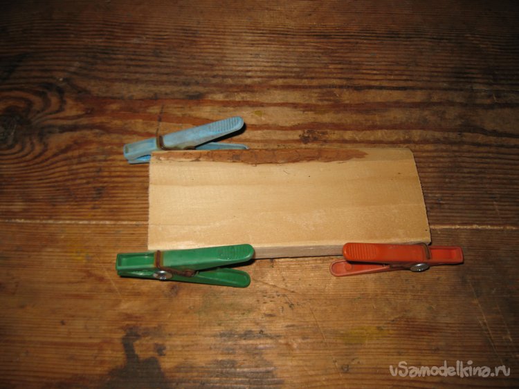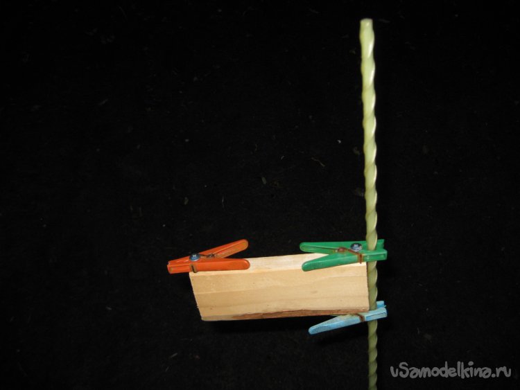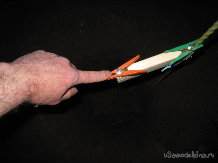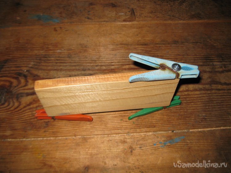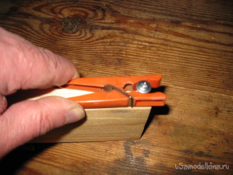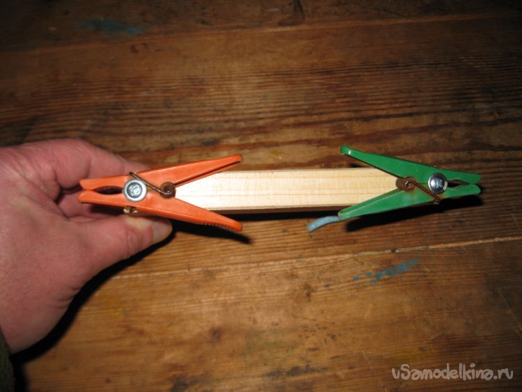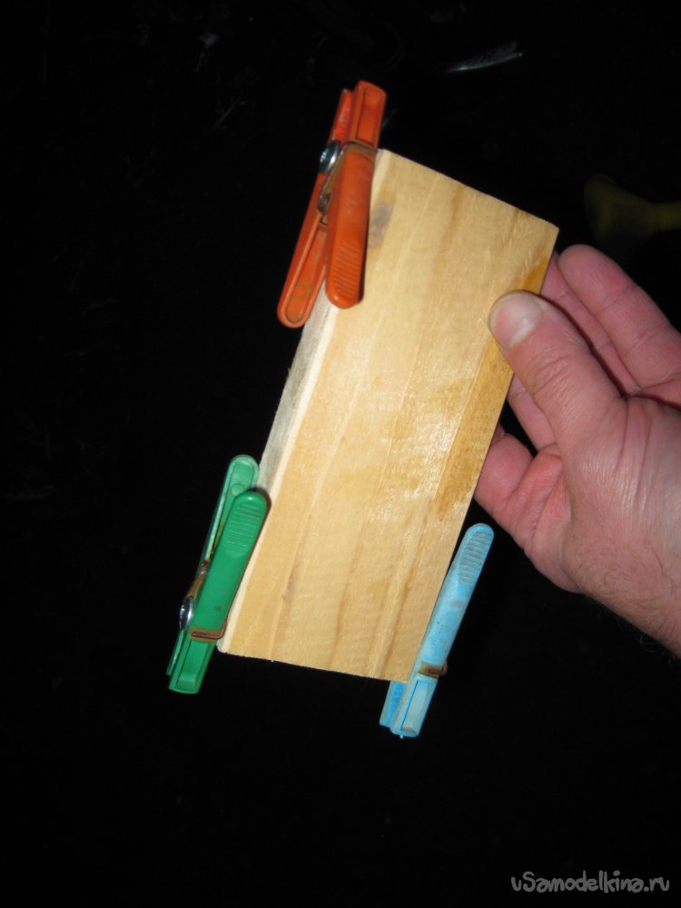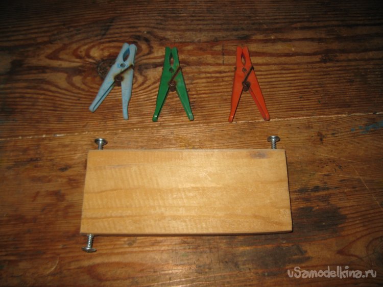 А после того как ввернул шурупы, установил на них бельевые прищепки. Таким образом, мое приспособление было готово.