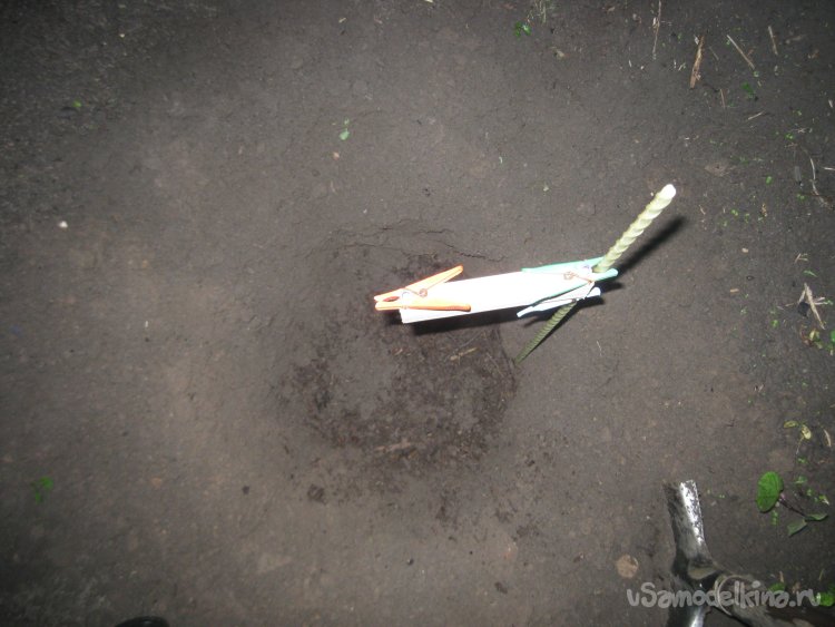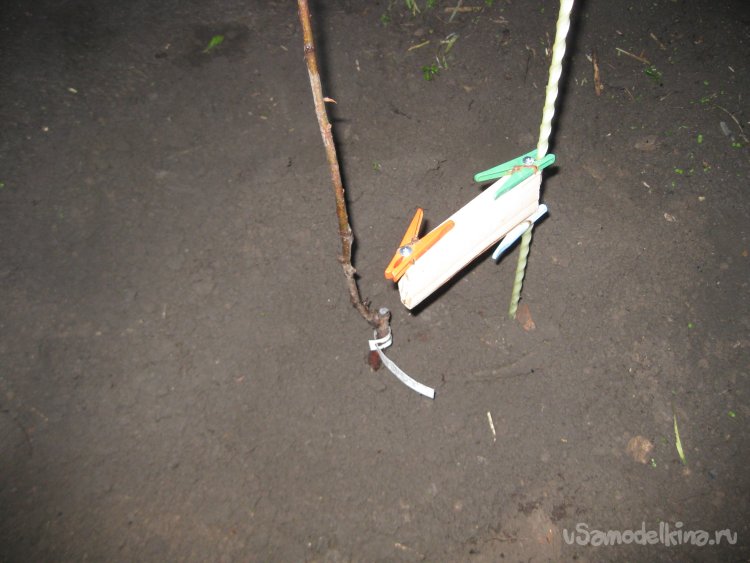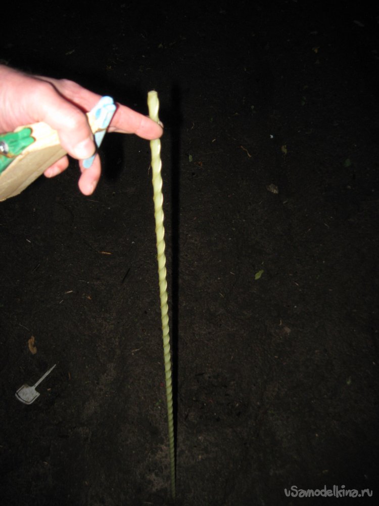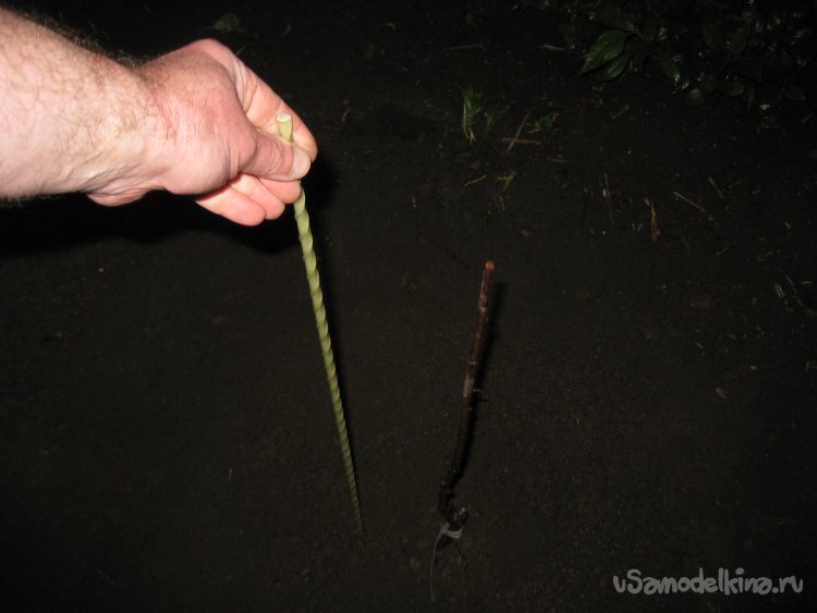 Кстати, помимо самого приспособления, нам будет необходим еще тонкий, но прочный и жесткий колышек к которому оно будет крепиться.