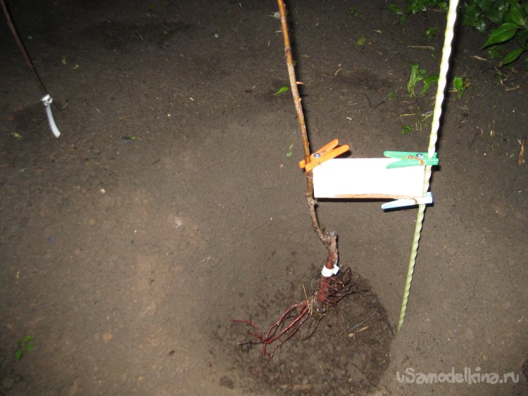 При помощи этой же прищепки (поворачивая ее в горизонтальной плоскости), можно более точно сориентировать саженец относительно центра посадочной ямы.