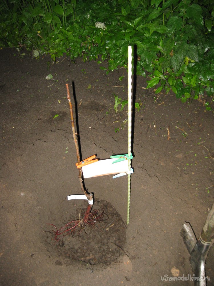 Но это в будущем. А сейчас посадка закончена, и, самое главное, что прошла она достаточно легко и удобно именно благодаря нашему приспособлению. Оно сыграло роль помощника, удерживающего саженец и благодаря этому, мне легко удалось посадить саженец в одиночку.