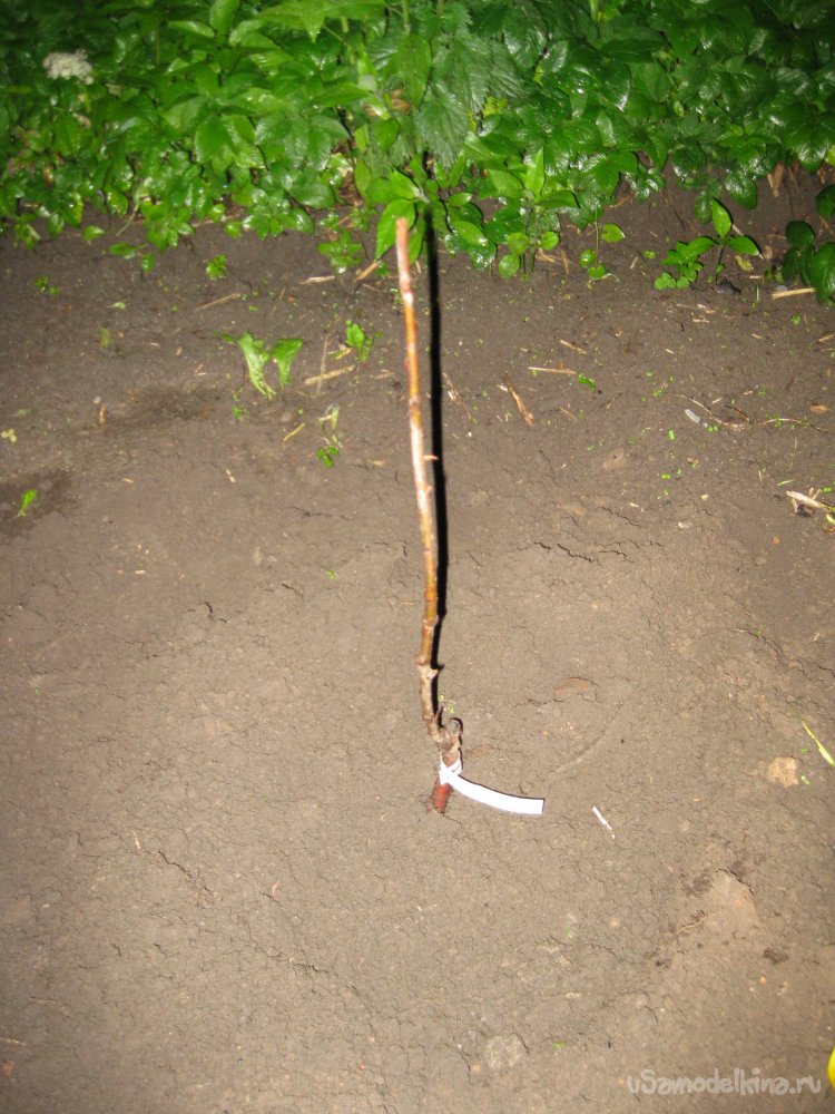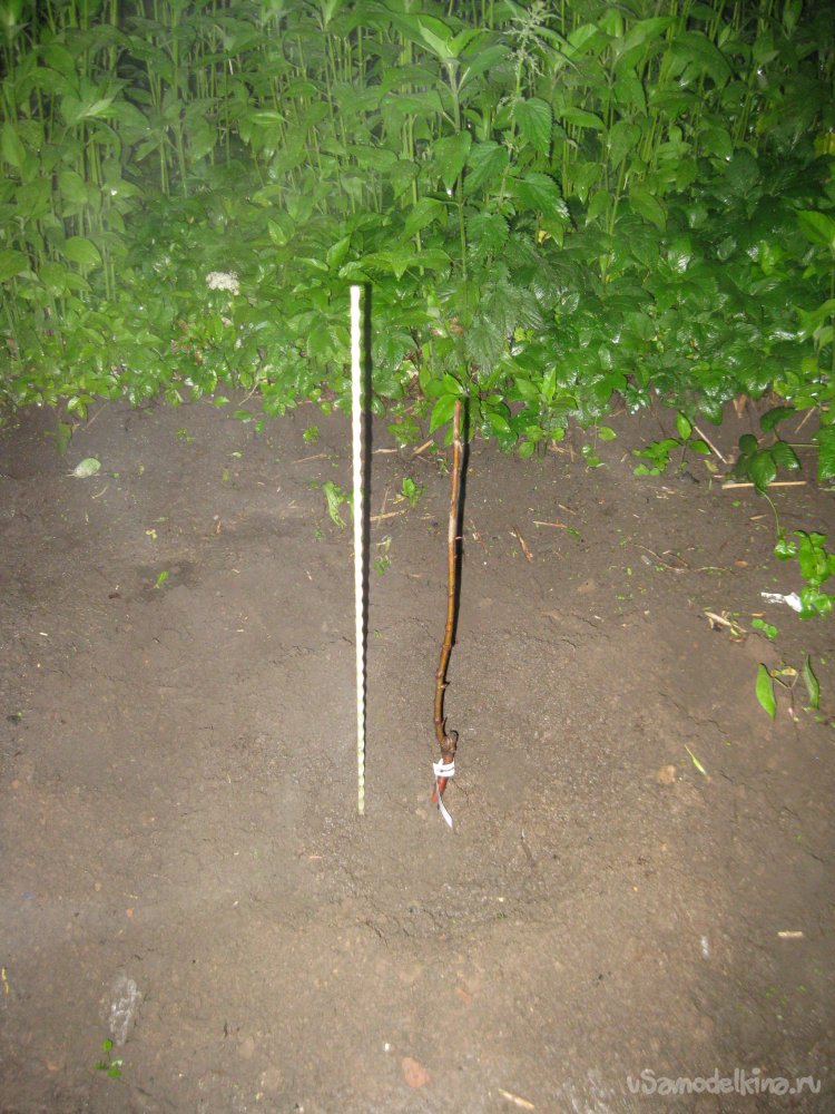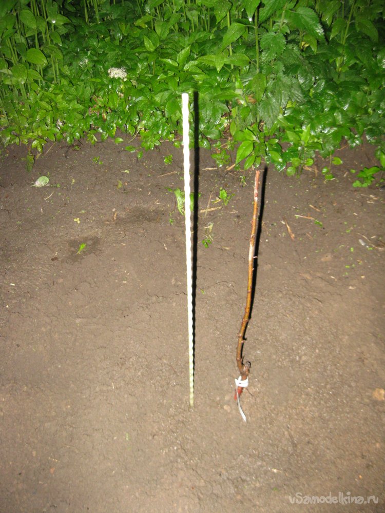 Ну и последний штрих – втыкаем рядом саженцем такой же стеклопластиковый колышек.