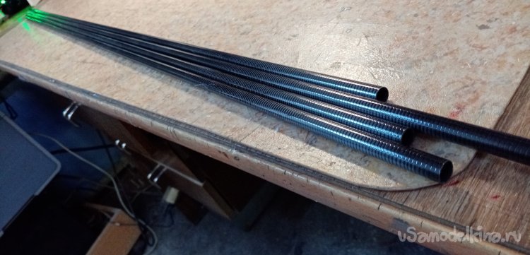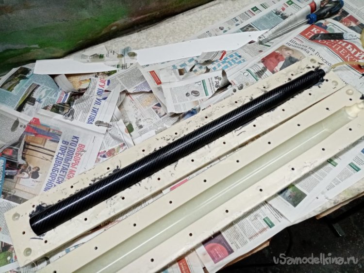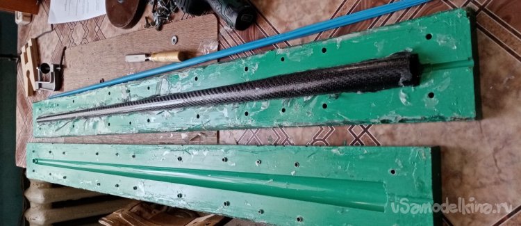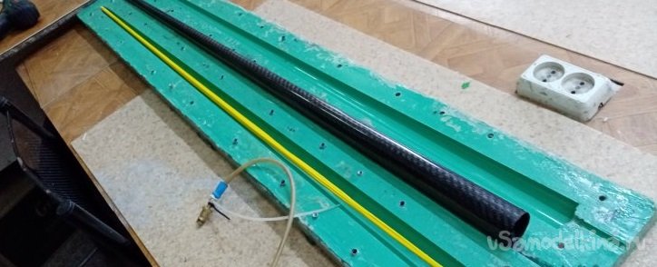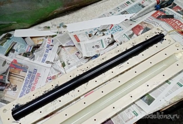 В матрице уложено 4 слоя тонкого карбона, все раздуто шариками при 4 атмосферах. Изготовил несколько хвостовых балок.