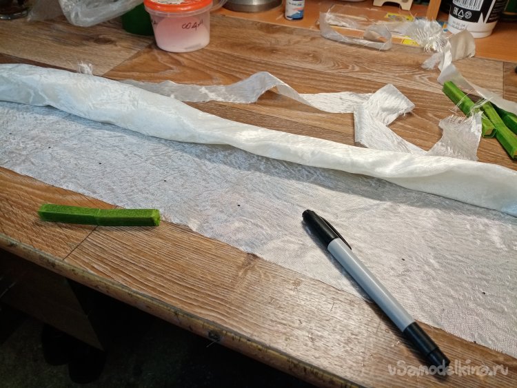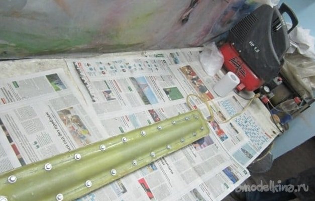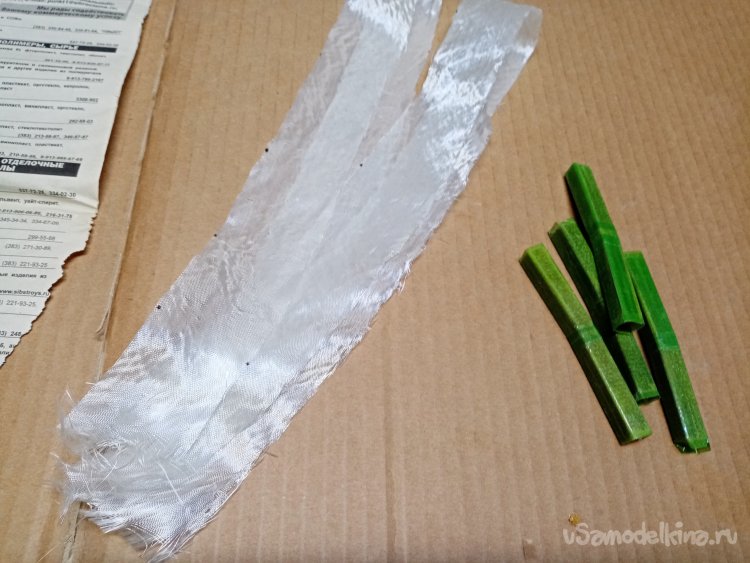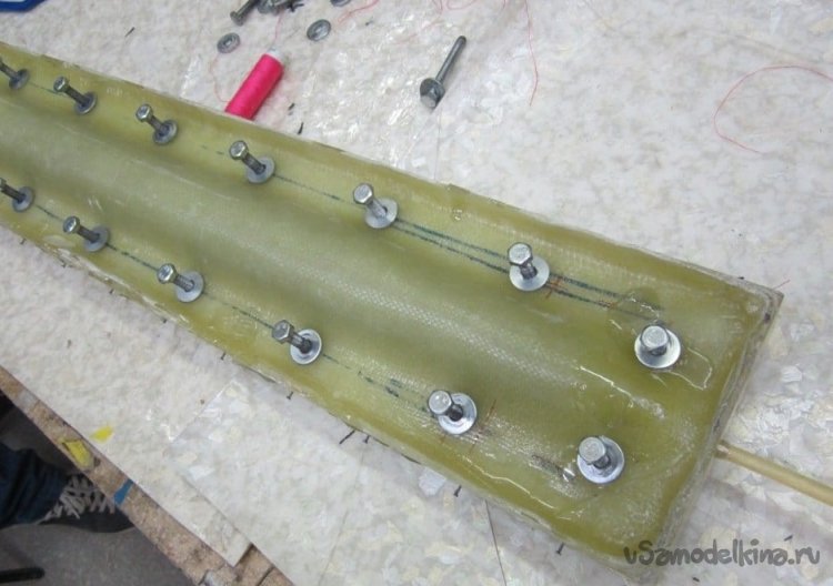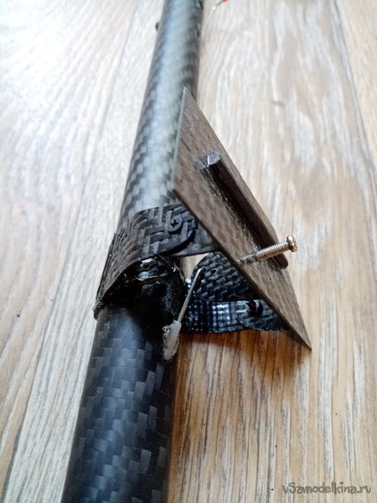 Из тонкой стеклоткани и эпоксидной смолы навил на уголки материала. Полученные пеналы вклеены в законцовки крыла и ушек.