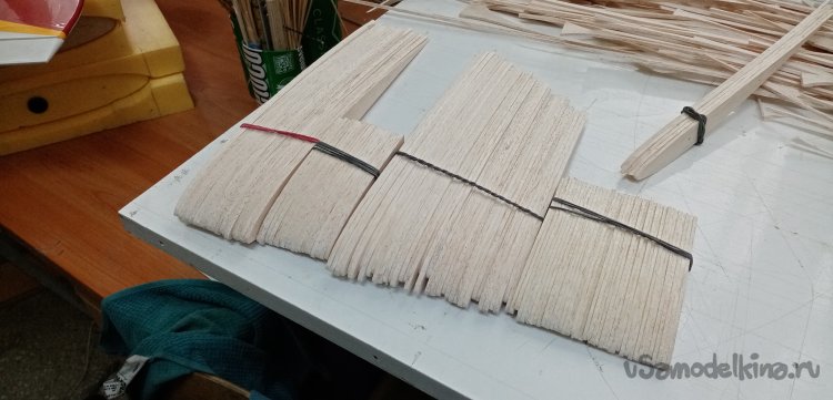После долгого резанья и пиления пакет заготовок нервюр для крыла готов.