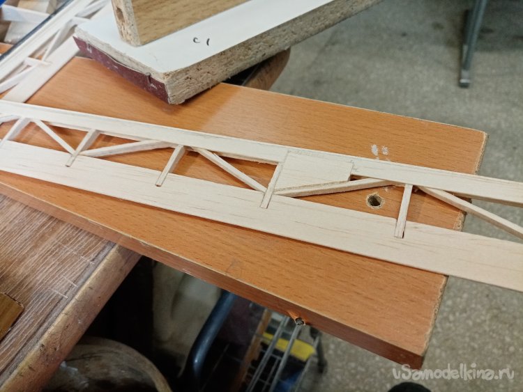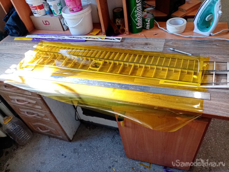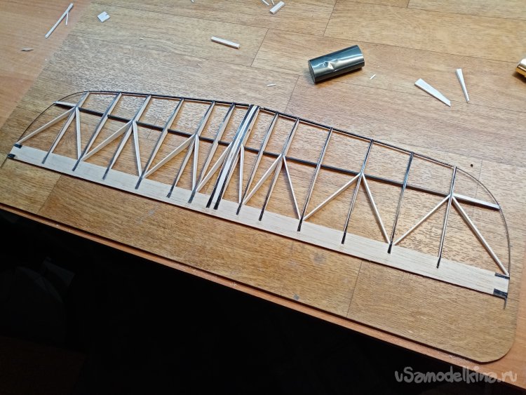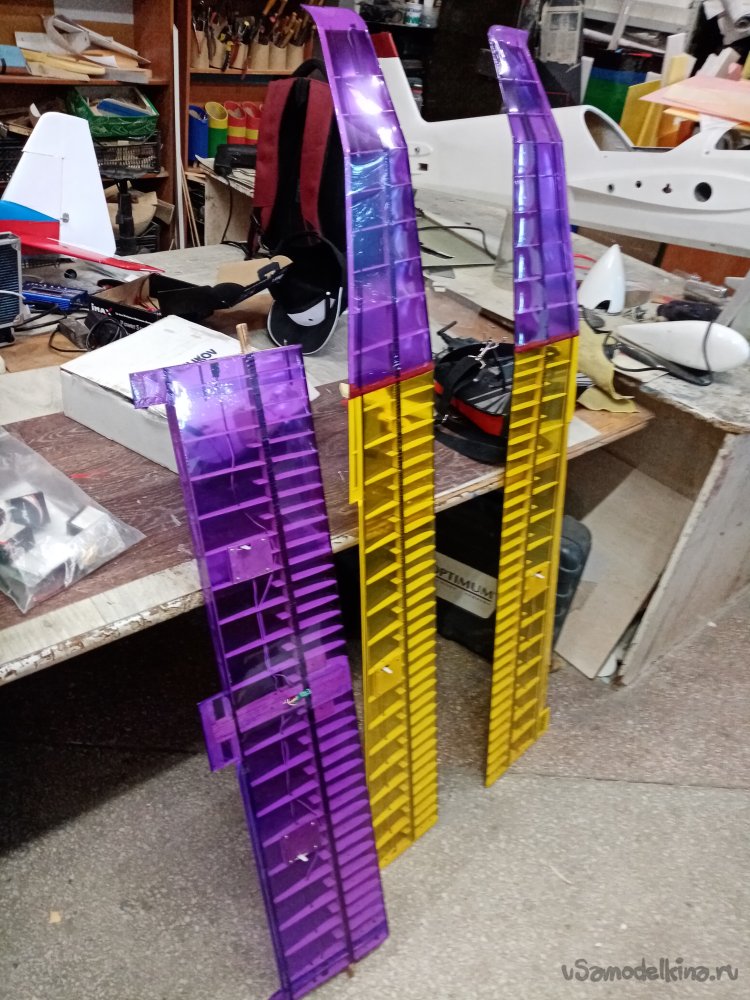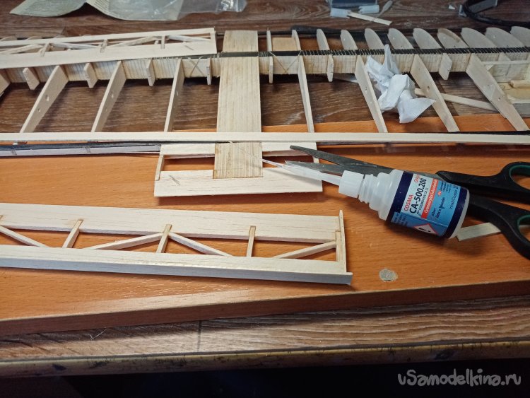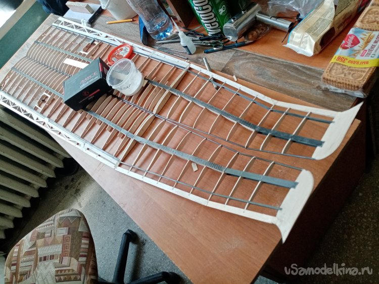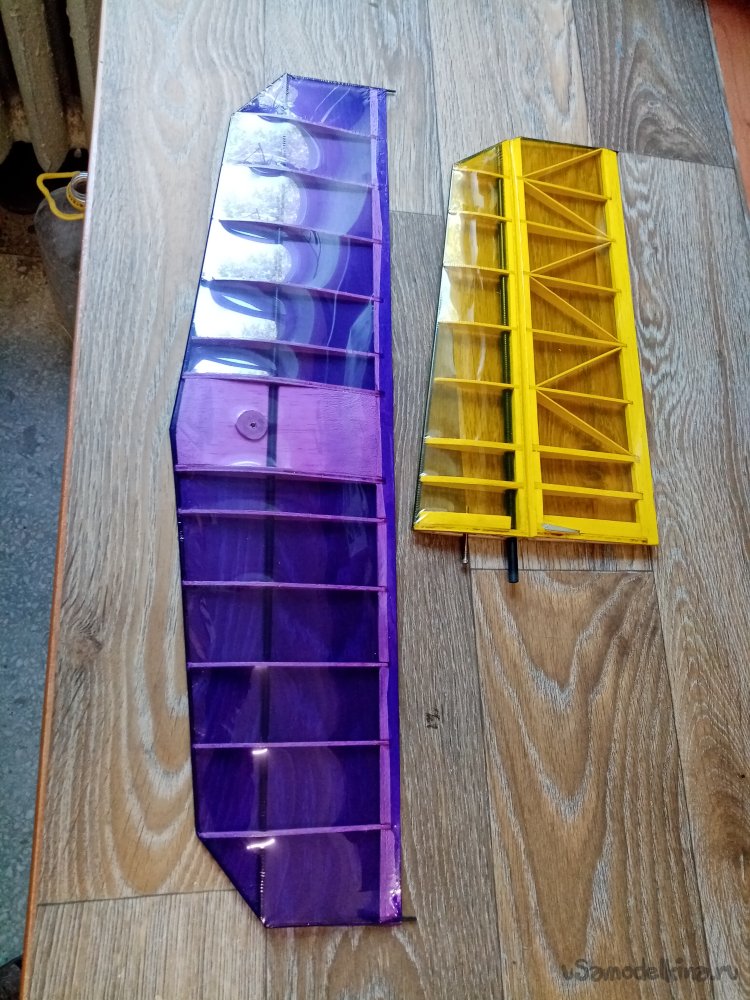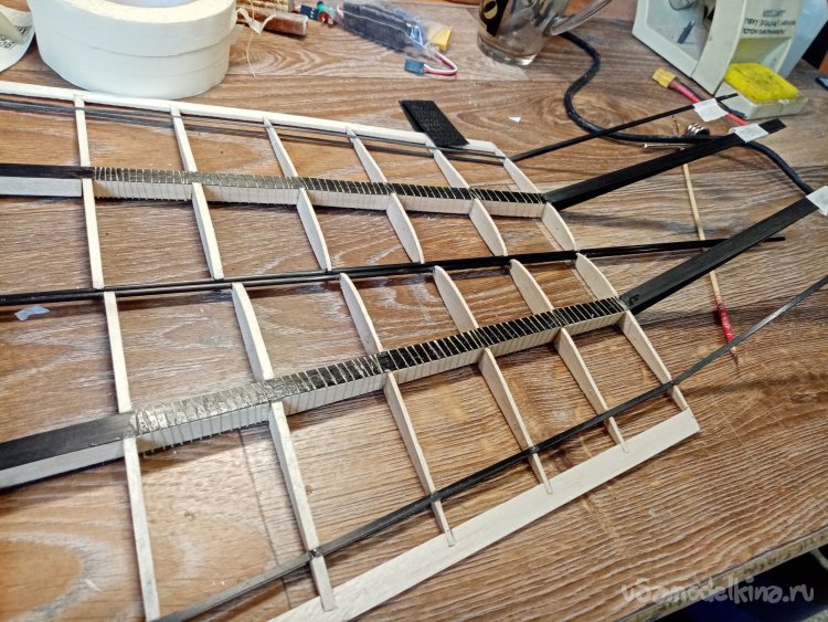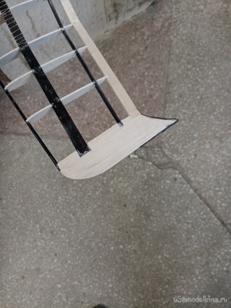 После сборки крыла, изготовление элементов управления. Усиливаю продольными и поперечными связями. Да, вся конструкция крыла собирается в основном на циакрине, в особо нагруженных местах применяется эпоксидная смола.