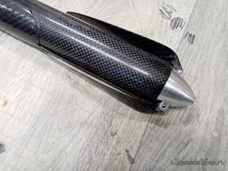 Изготовлена матрица. Фюзеляж отформован из спрэда карбона с арамидом, внутренний слой. Затем два слоя карбона, конструкция раздута изнутри шариком при 6 атмосферах. В результате изготовил несколько фюзеляжей про запас и крышек силового отсека.