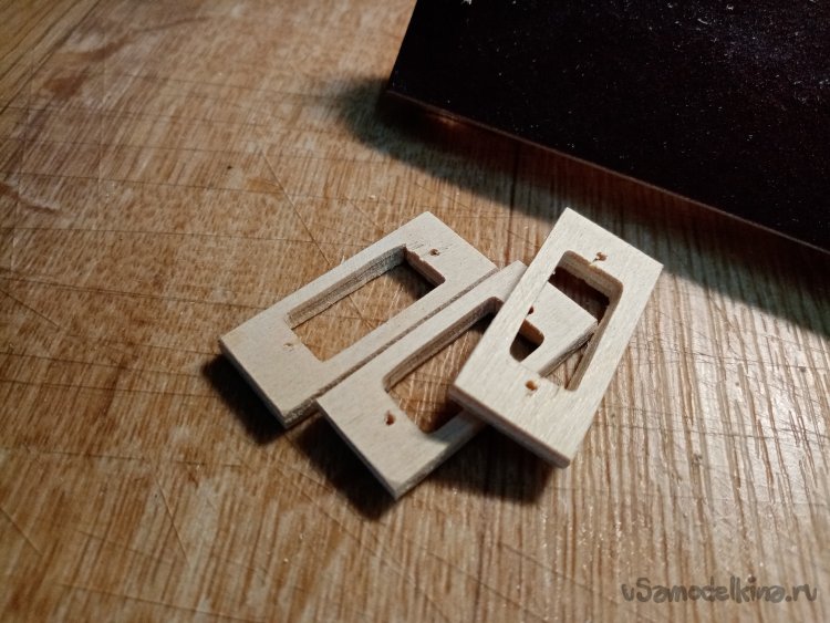 Нужно установить сервоприводы управления. Под них бодро выпиливаю рамки из 4 мм шлифованной фанеры. Эта модель имеет особенность. К нее нет руля направления. По курсу разворачиваю элеронами и держу тангаж рулем высоты. Небольшое упрощение управления никак не сказывается на управлении. На элероны можно поставить одну машинку. Но много возни с установкой торсионов управления и нужно точно подобрать все элементы. Чтобы элероны отклонялись на одинаковый угол. Этой позиции проще добиться установкой парочки сервоприводов на крыло. Можно довольно просто настроить углы отклонения при помощи аппаратуры. И так ставлю две сервомашинки.