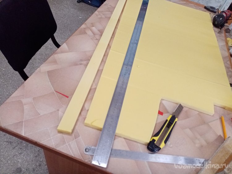 Обшивку крыла делаю из подложки под ламинат размером 120х50 см, толщиной в 3мм. Жаль, конечно, но придется отрезать 20 см по длине чтобы уложиться в размер, разрешенный на соревнованиях.