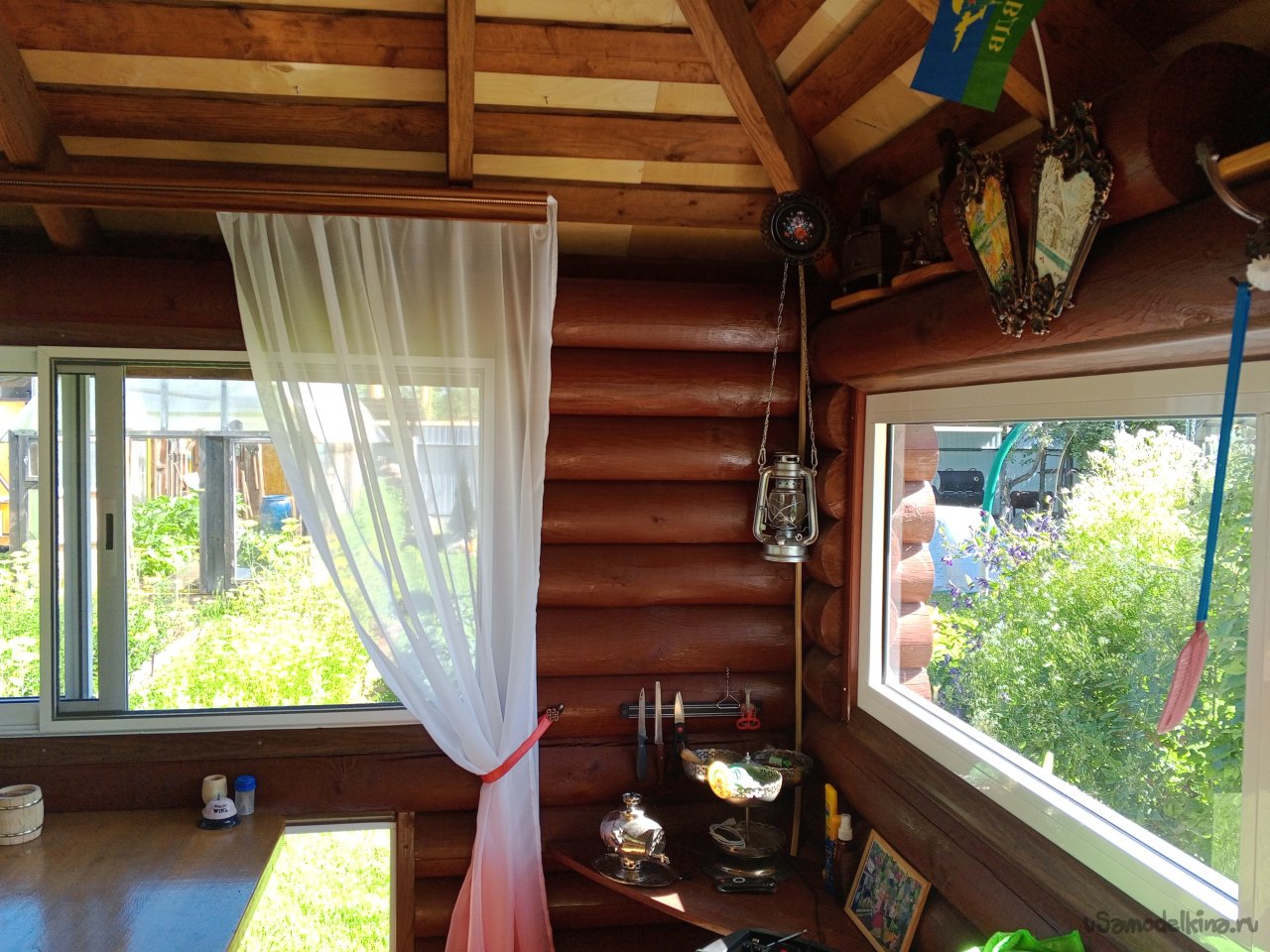 Высотой вся полка, заявлена мной, на 5 стеновых бревен, соответственно 5 ярусов. Расстояние по осям бревен, примерно 150 мм. 5 ярусов с 2х метровой доски = 400 мм. длинна заготовки.