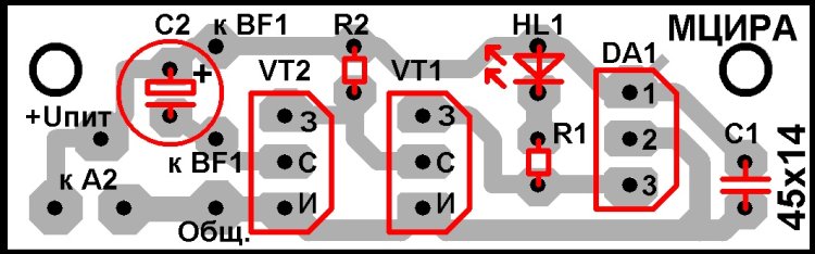 - конденсатора С2, улучшающего стабильность работы активного зуммера BF1;