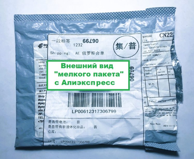 Предварительно оплаченный Т- картой, пакет из КНР пришёл за месяц и был получен в местном почтовом отделении. Обо всех промежуточных перемещениях пакета покупатель извещался сообщениями, размещёнными на сайте Почта России.