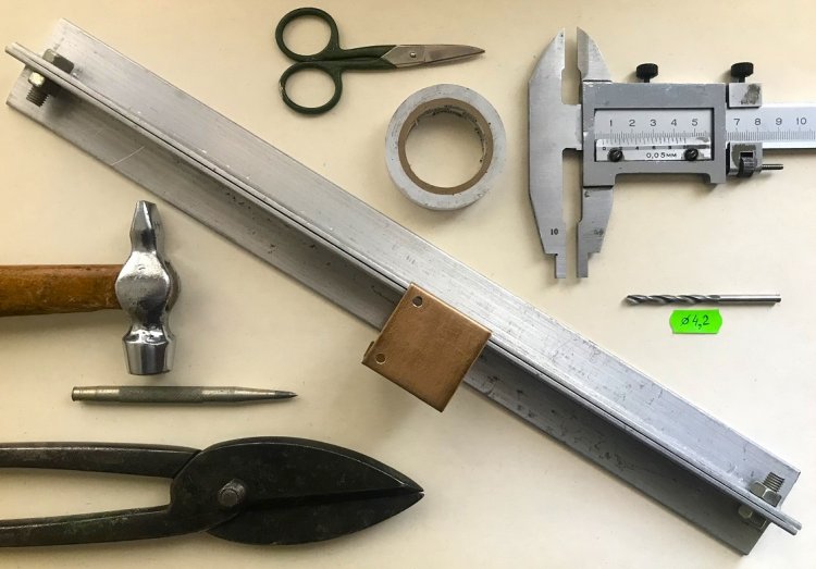 По тонкой жести лучше работать не сверлом, а шилом. Разметка - методом кондуктора. Проделывание пазов и ниш – ножницами (аккуратно, так как напильник оставленные неровности не уберёт).