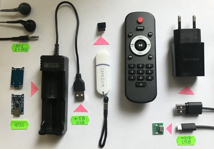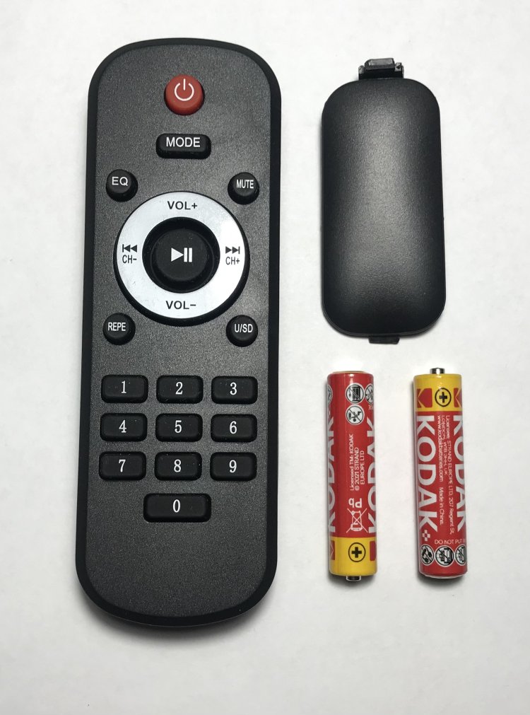 Использование ИК-ПДУ позволяет получить больше функциональных возможностей (особенно в режимах FM-приёмника и проигрывателя c TF-карты). В ИК-ПДУ устанавливаются 2 элемента питания типоразмера AAA-size (1,5 Вольта х 2 шт.)