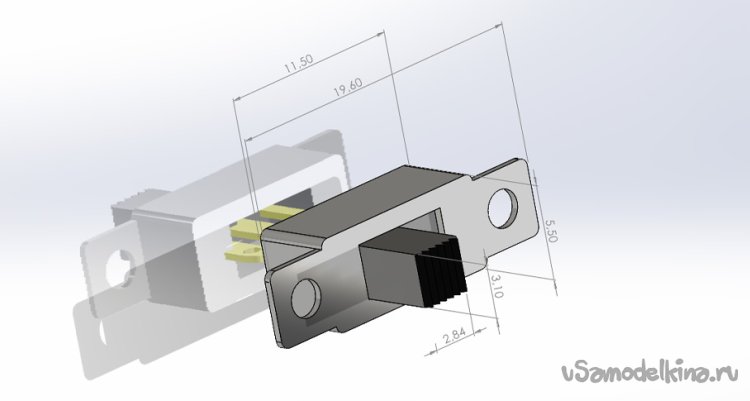 Для фиксации выключателя в корпусе используется вставка. Размеры выреза необходимо уточнить по соответствующим размерам имеющегося переключателя.