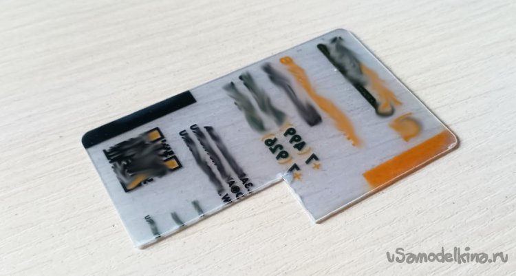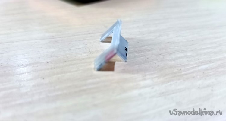 Такую вставку-упор лучше вырезать из тонкого жесткого материала, например, из использованной пластиковой карты или визитки (как в данном случае).