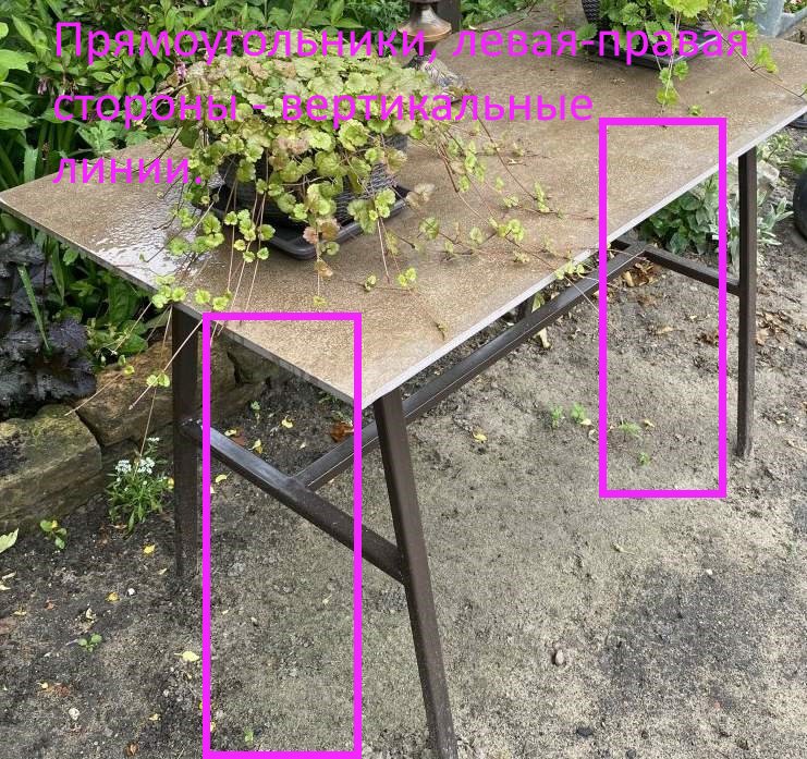 Сначала хотел сварить прямоугольную рамку для столешницы. Но выяснилось, что цельных отрезков профильных труб у меня уже не хватает на весь периметр. Зато много коротких обрезков. Поэтому, решил сварить каркас, напоминающий телевизионную антенну: