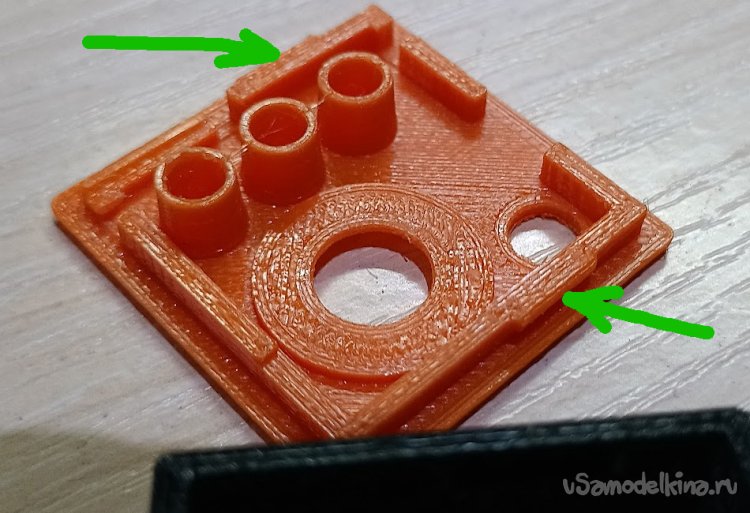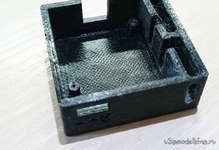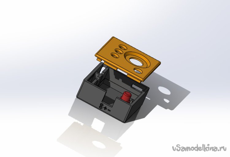 Крышка и низ корпуса крепятся на защелки. Зазоры в модели сделаны достаточными, но из-за усадки пластика может потребоваться немного подработать выступы.