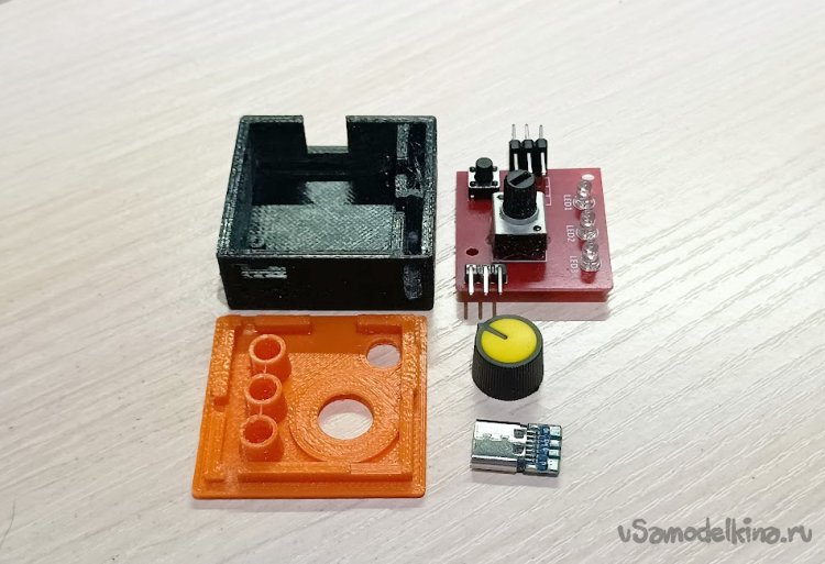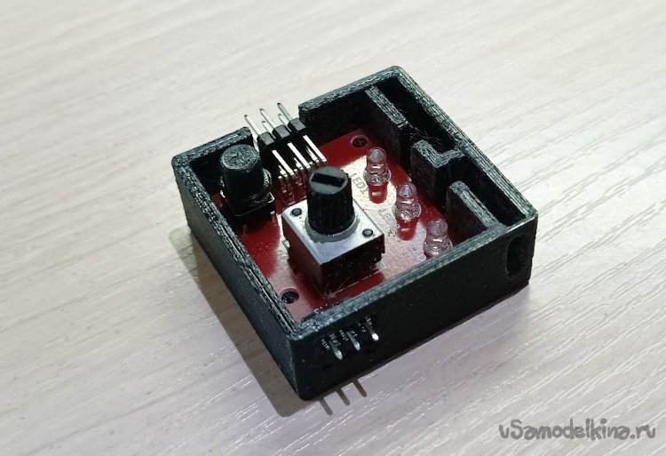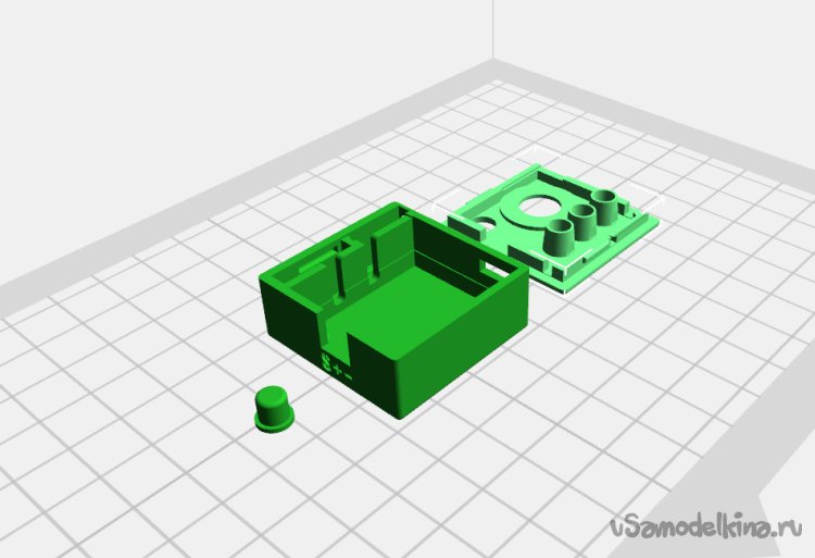Для печати корпуса необходимо скачать архив с stl-файлами ( ). В слайсере выбрать высокое качество печати (т.к. сам корпус достаточно мал и имеет мелкие элементы). Распечатать все элементы корпуса. Низ корпуса и колпачок печатаются без поддержек. Только для крышки необходимо включить поддержку для углубления под колпачок переменного резистора.
