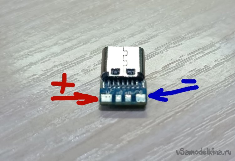 После соединения разъема и платы еще раз убедитесь в правильности полярности проводов. Теперь необходимо проверить работоспособность тестера. Для этого нужно подключить к разъему Type C блок питания или повербанк. Имейте в виду, что мощности платы может быть недостаточно, чтобы источник питания «распознал», что подключена нагрузка. Некоторые блоки и повербанки могут не включиться, а Вы ошибочно посчитаете, что не работает тестер.