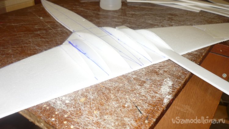 Вклеиваю корневую, промежуточную и среднюю нервюры.