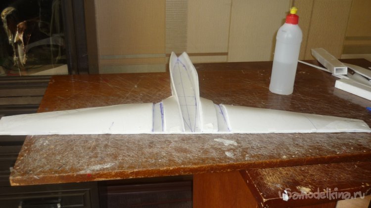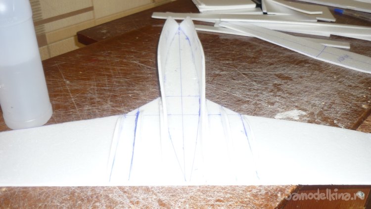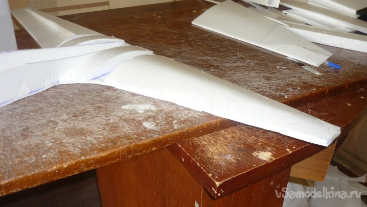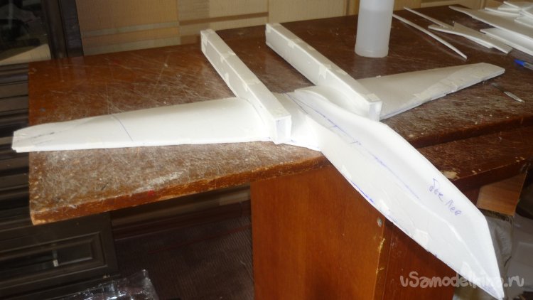 Примерил заготовки для балок и стабилизатора на нижнюю поверхность крыльев.