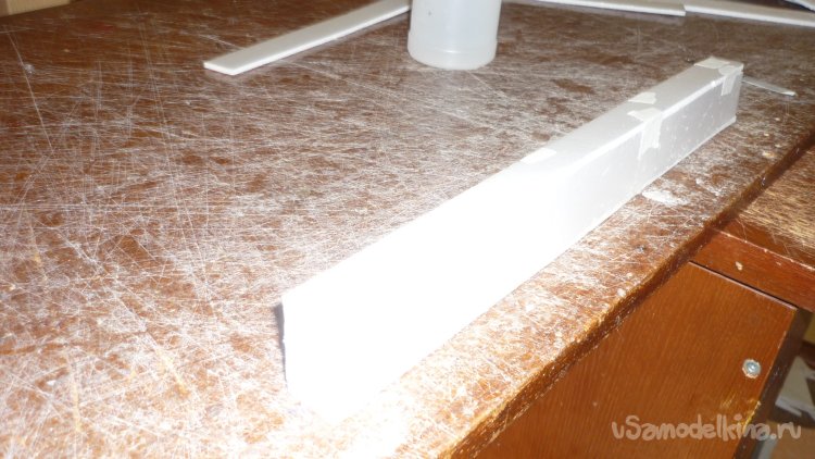 Обрезаю концы хвостовых балок и вклеиваю недостающую часть верхней стенки.