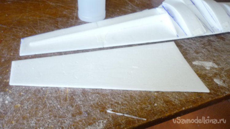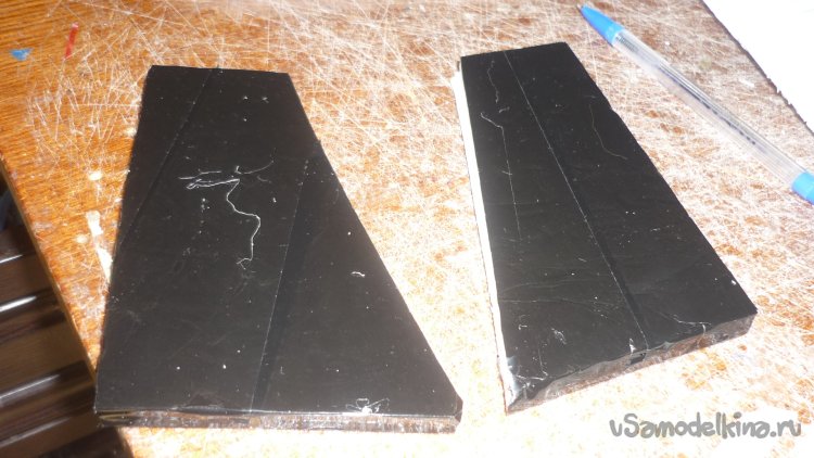 Склеиваю заготовки килей в два слоя и обтягиваю чёрным скотчем.