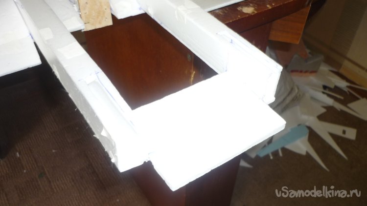 Вырезал заготовку из утеплителя и приклеил нанёс кусочек 3 мм фанеры - получилась моторама.