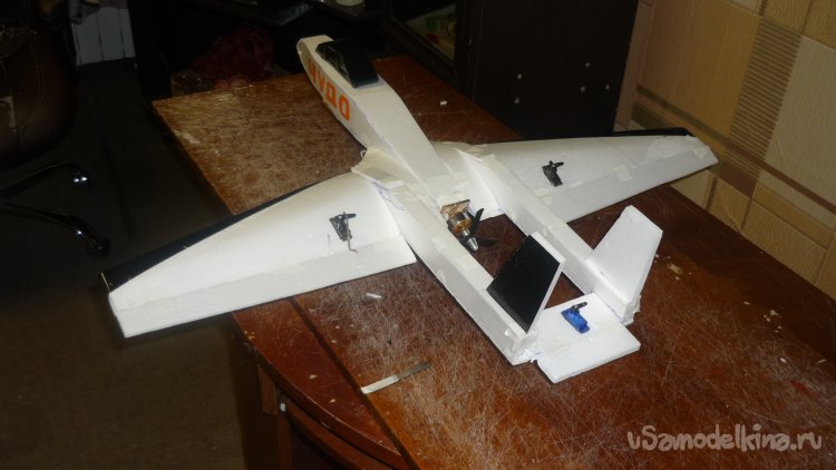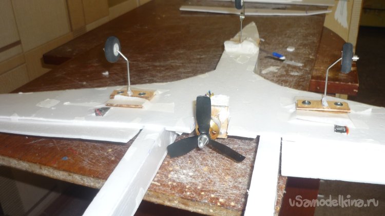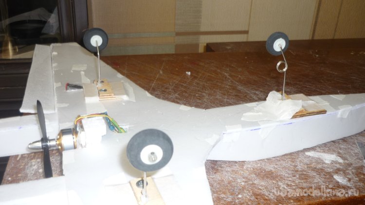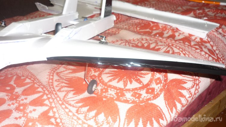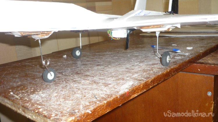 От старой авиамодели подобрал подходящие по весу и размеру шасси. Смонтировал.